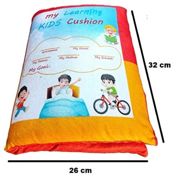 Shivay Present : This Soft Cushions will help your kids for Interactive and Wonderful Experience make learning smart and easy. This Cushion will help your kids to away from TV And mobile. Kids can learn 12 things in this cushion. including English. Hindi, Gujarati Alphabets, Numbers, Vehicles, Shapes, Colours, Days of the Week, Month of the year, Fruits, Vegetables, Body parts. Very Hard to Break the cushions because its made from fabric.