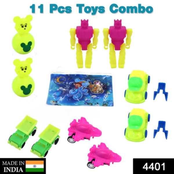- Mini toys combo including small cars, mini Airplane, and robot for fun and play for kids.
