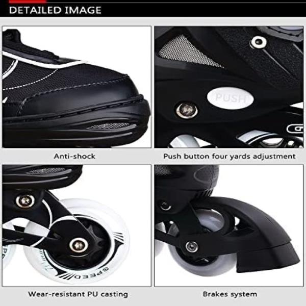 The in-line design allows for greater speed than roller skates and better maneuverability. Inline skates are designed specifically for those individuals who seek to utilize their skates for getting in shape, or skating very frequently.Variances between recreational and inline skates exist in the bearings, wheel size, and overall weight. inline skates will typically have faster bearings and larger wheels to generate speed for lengthy skates. Inline skate boots will likely be more comfortable due to liner construction, as well as circulate air better via ventilation differences.Inline skates offer numerous advantages when it comes to exercise, most notably, it is not boring! Skating is a fast-paced, exciting activity that offers a lot more than your treadmill or yoga ball will. Furthermore, inline skating is a low impact activity that will generate little wear-and-tear on your joints and bones. Also, inline skating can burn as many calories as running. The list of benefits is long, but the bottom line is that inline skating is a great fitness activity. If you plan on using your skates to get in shape via long, fast skating adventures, then fitness skates are likely the best option for you. *Buy Only HPH CRAFT for original Product* *Never Trust to Chip Rate *