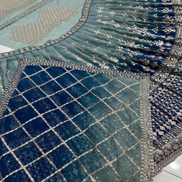 🧣DUPTTA:PURE FAUX GEORGEET 2D PEDDING WITH EMBROIDERY DESIGN WORK WITH EMBROIDERY LACE BORDER