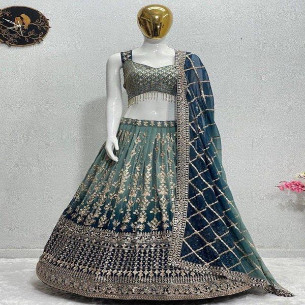 💃🏾LEHNGA:PURE FAUX GEORGEET 2D PEDDING WITH EMBROIDERY DESIGN WORK