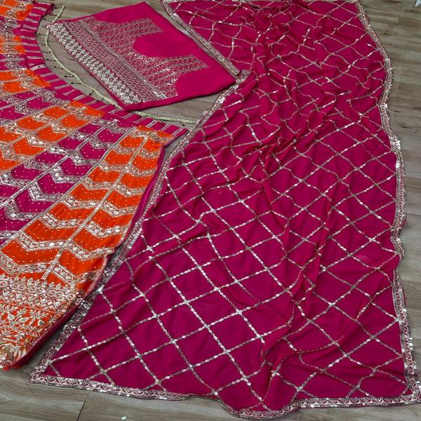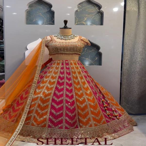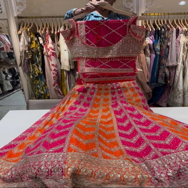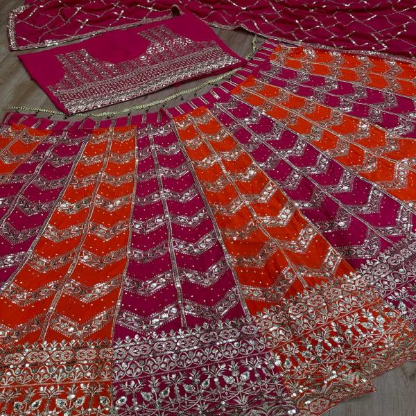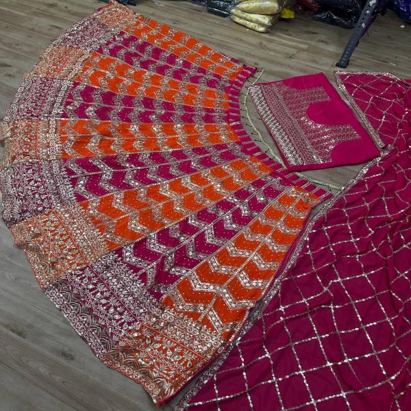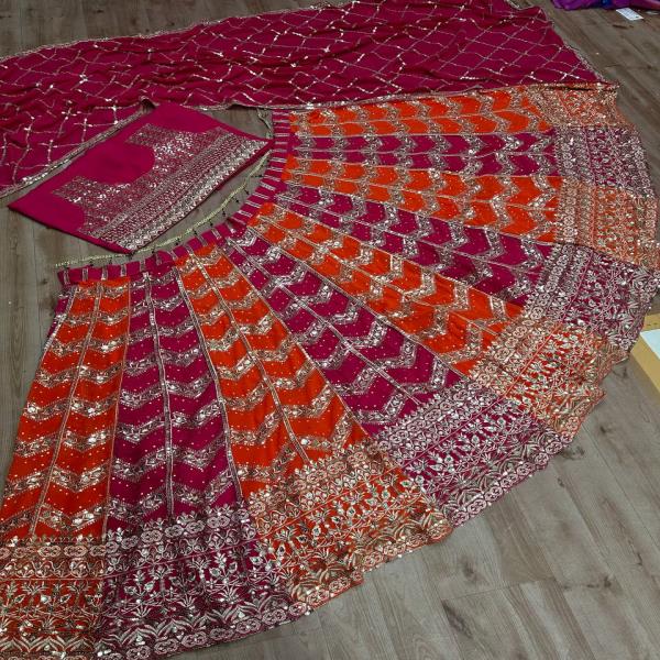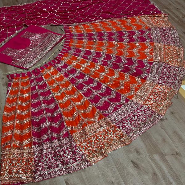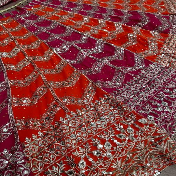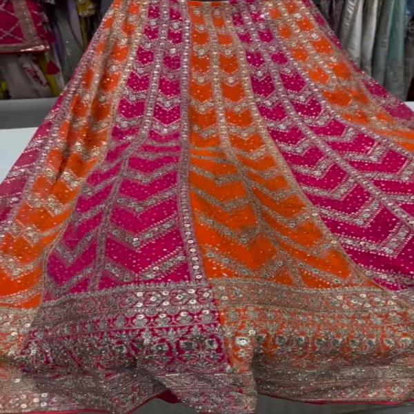 💃🏾LEHNGA:PURE FAUX GEORGEET WITH 3MM AND 5MM EMBROIDERY SEQUENCE DESIGN WORK