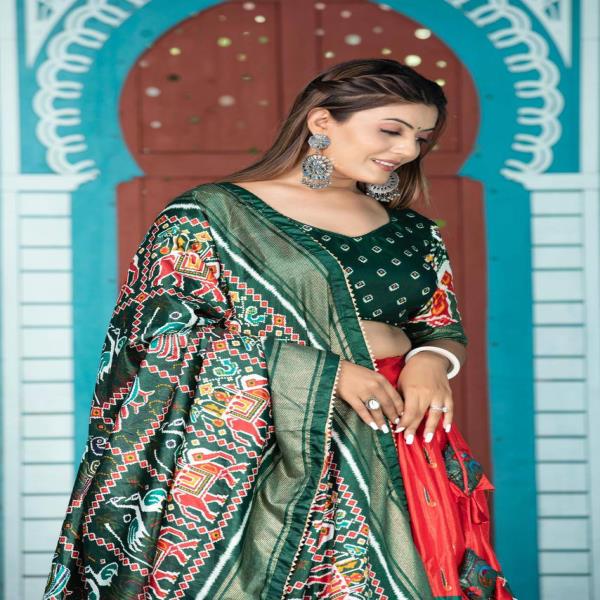 Lehenga Work : Fully Printed With Contrast Weaving Border