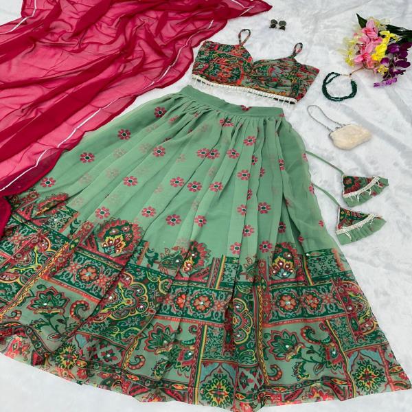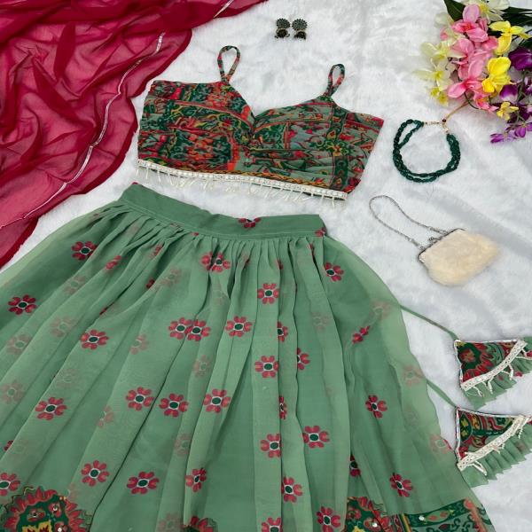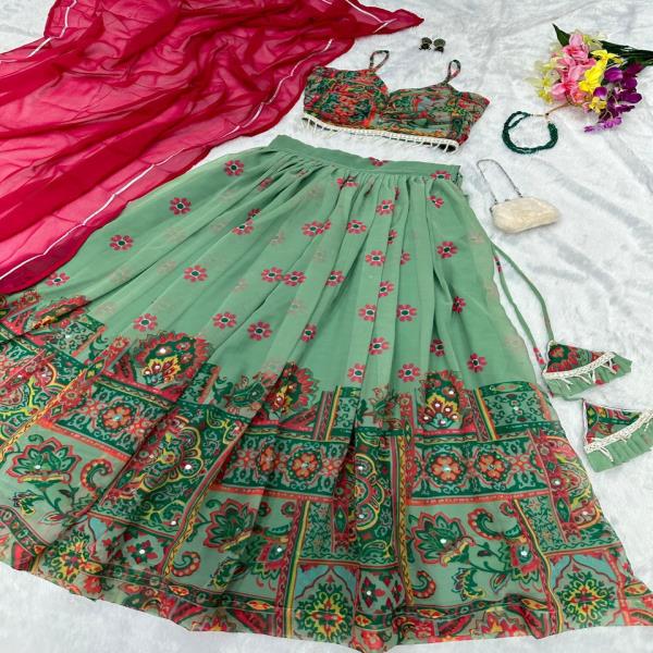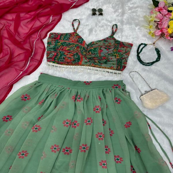 lehnga - Pure georgette silk digital printed kalamkari lehnga with canvas patta 🌸 fully stitched