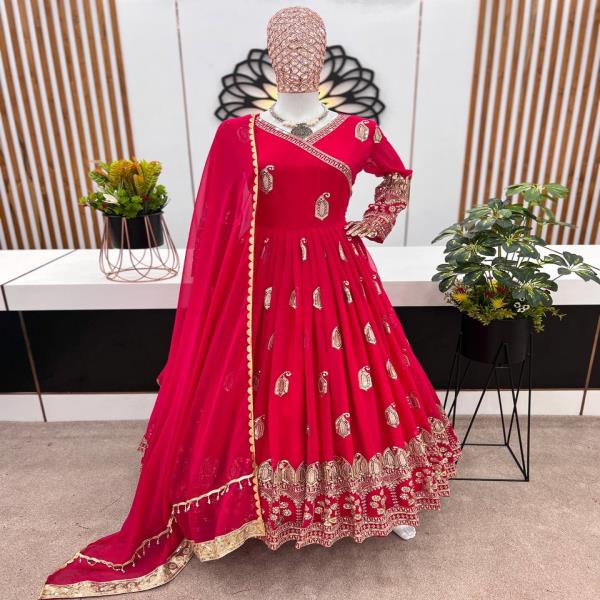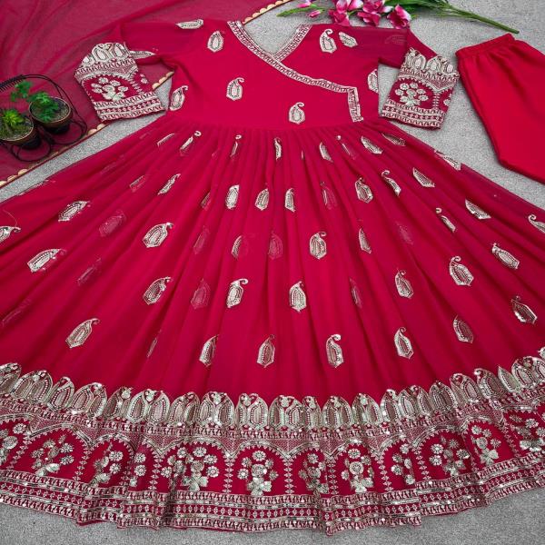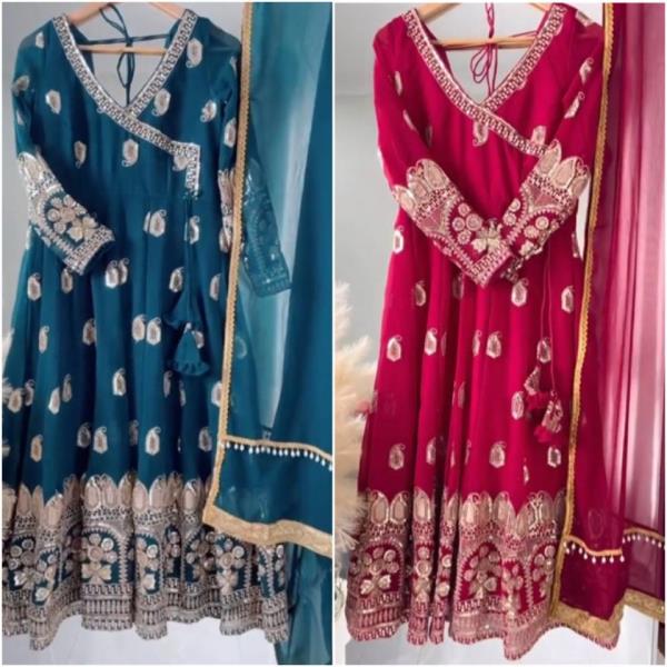 👗 Gown Fabric * :Faux Georgette With *Heavy Embroidery Sequence Work With Sleeves