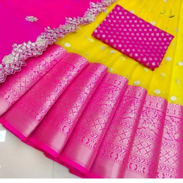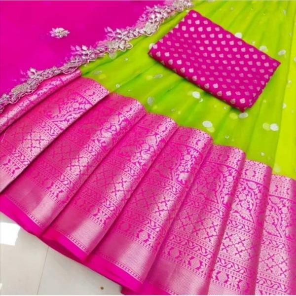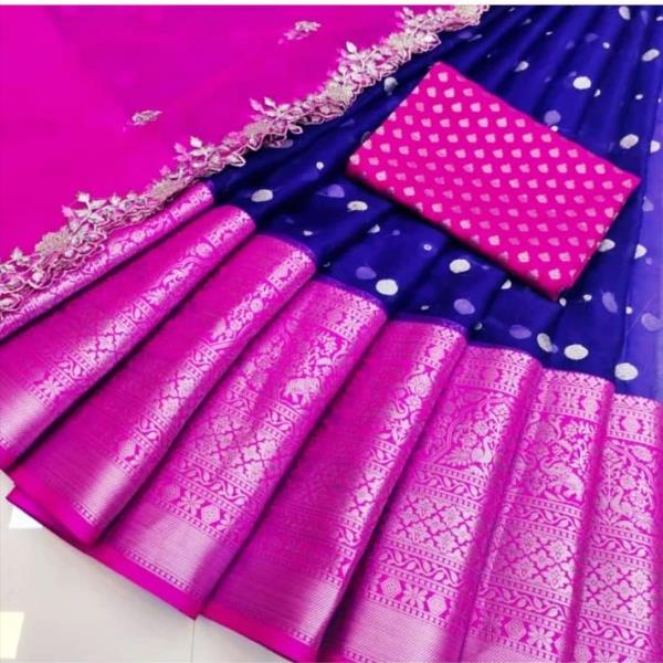 😍Pure nylone organza Silk with all bodi Zari embroidery work and border with blouse along with Duppta !!